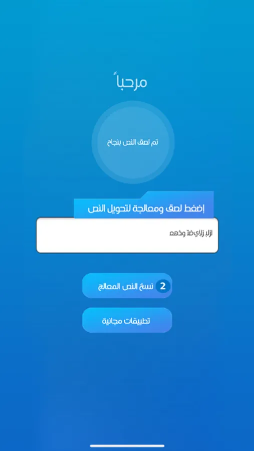 انسخ النص الذي تريد كتابته باللغة العربية ثم افتح التطبيق انقر فوق اسم الزر بالرقم 1 لمعاينة النص الخاص بك.
