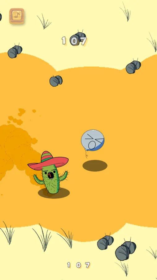 Help Saguaro, a mexican cactus, to go for a jog without hit his balloon friends. Avoid them as long as you can. Every time you hit a balloon you will lose one your beloved items, like his hat or one of his maracas! You can restore your lives collecting the glowing maracas you will find on the road!
