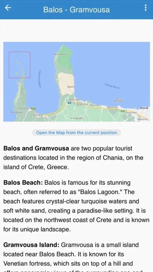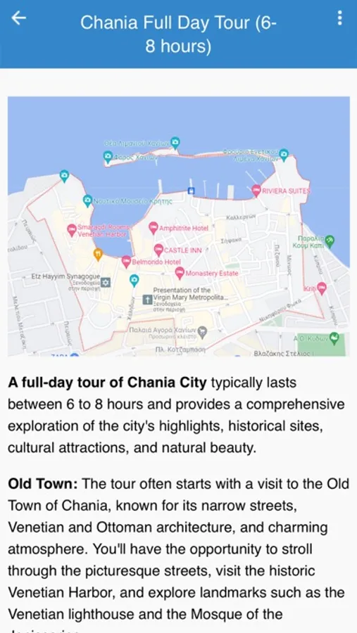 The app also provides tips for planning day trips and excursions from Chania, as well as suggestions for outdoor activities and local experiences.