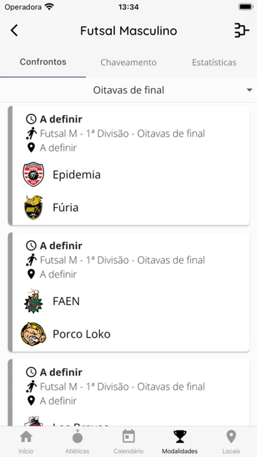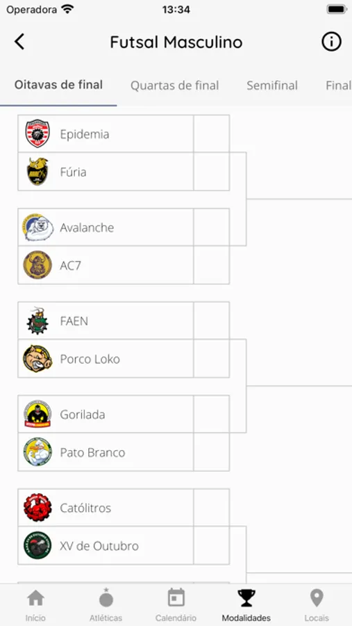- Ver o calendário de jogos da competição, chaveamento das modalidades e classificações