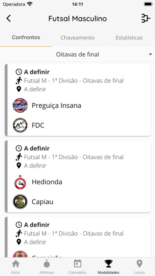 - Ver o calendário de jogos da competição, chaveamento das modalidades e classificações