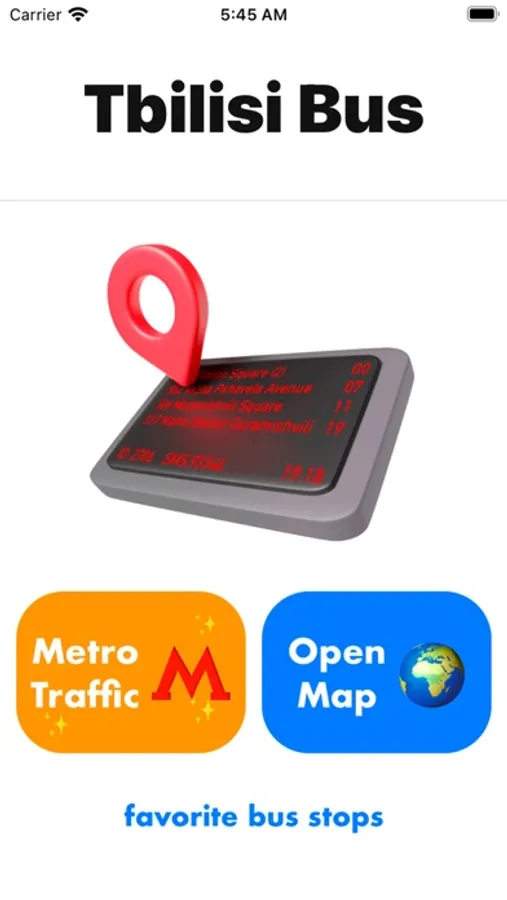 This is an app for finding bus stops in the city of Tbilisi. Find your stop and add it to your favorites list so you always have it at your fingertips! You can participate in subway station occupancy reports and receive occupancy data from other users of the app!