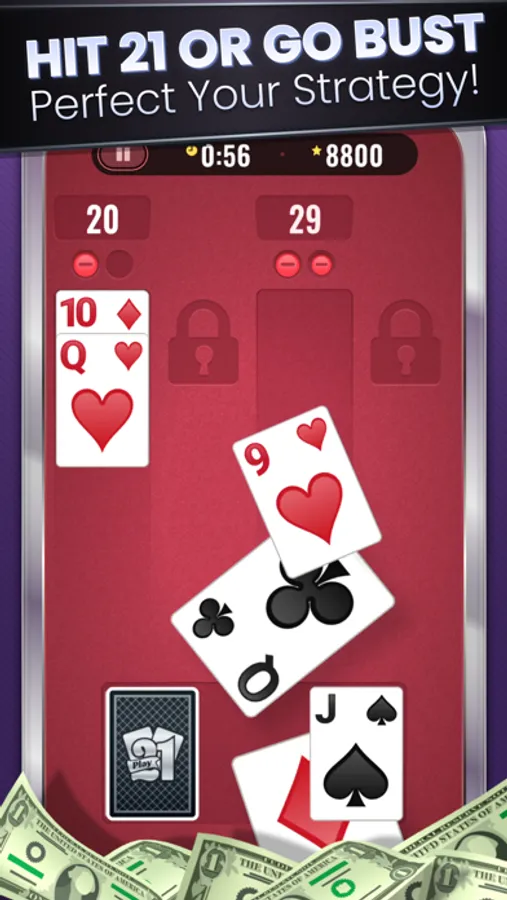 Play 21 is the perfect mix of blackjack and solitaire. Take your blackjack skills from the casino floor to your phone with this fast-paced card game.