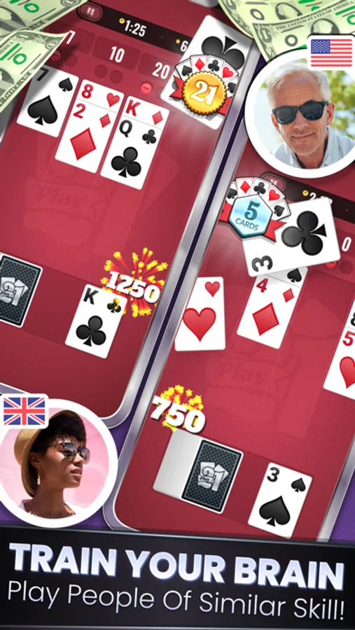 All combinations of cards count, from a casino blackjack to 5 card runs, just don't exceed 21! The quicker you play the more points you earn and you can take home the cash with a winning score!