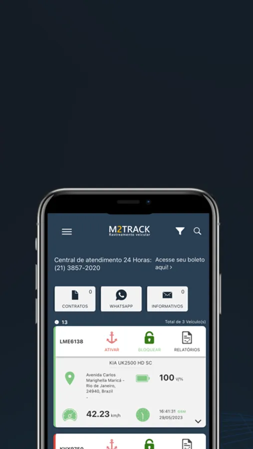 O APP M2TRACK foi criado para dar mobilidade ao rastreamento veicular, mostrando os veículos rastreados pelo sistema.