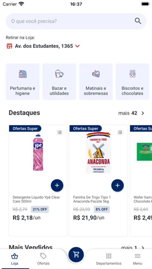 - Seleção de centro de distribuição: Selecione a unidade do supermercado mais próximo da sua casa baseado no seu CEP.