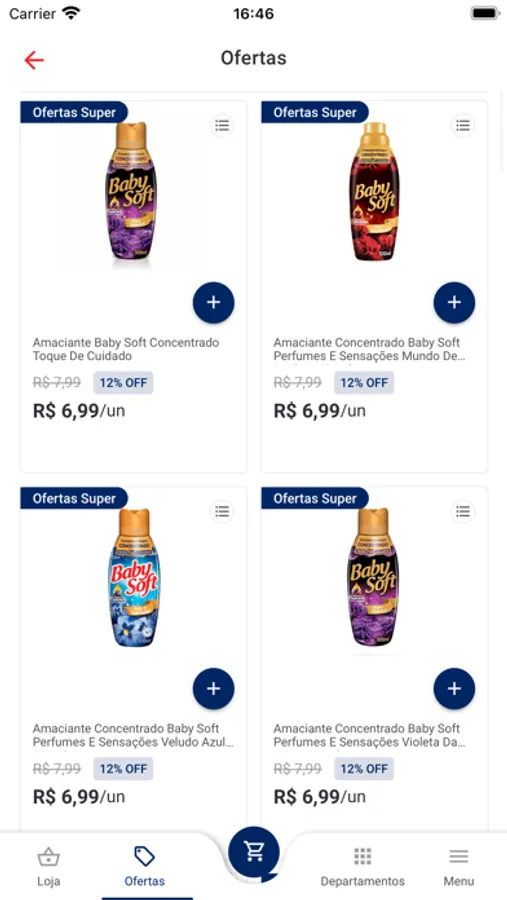- Seleção de departamentos: É possível navegar entre departamentos de produtos para maior direcionamento e compras de uma seção específica.