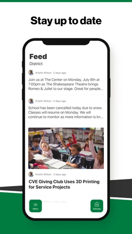 In the Live Feed is where you'll find updates from the administration about what's going on in the district right now. Whether that's celebrating a student's success, or reminding you about an upcoming deadline.