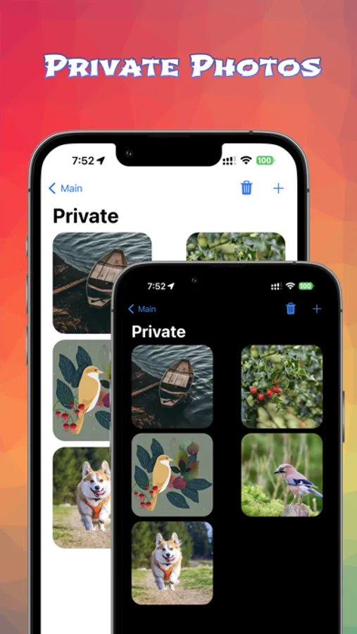 Secure Storage: The app uses advanced encryption technology to safely store your photos on your device. This ensures that your images are not viewable or accessible to others, even if someone tries to access your device without permission.