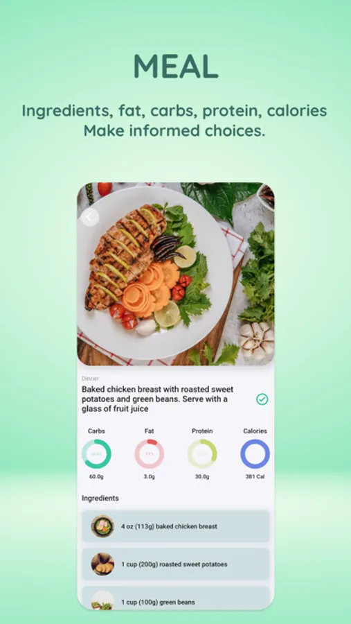 Choose from standard, vegetarian, or vegan diet plans. Each plan offers detailed food information, including images, fat, carbs, protein, and calories. Enjoy delicious recipes and track your intake effortlessly.
