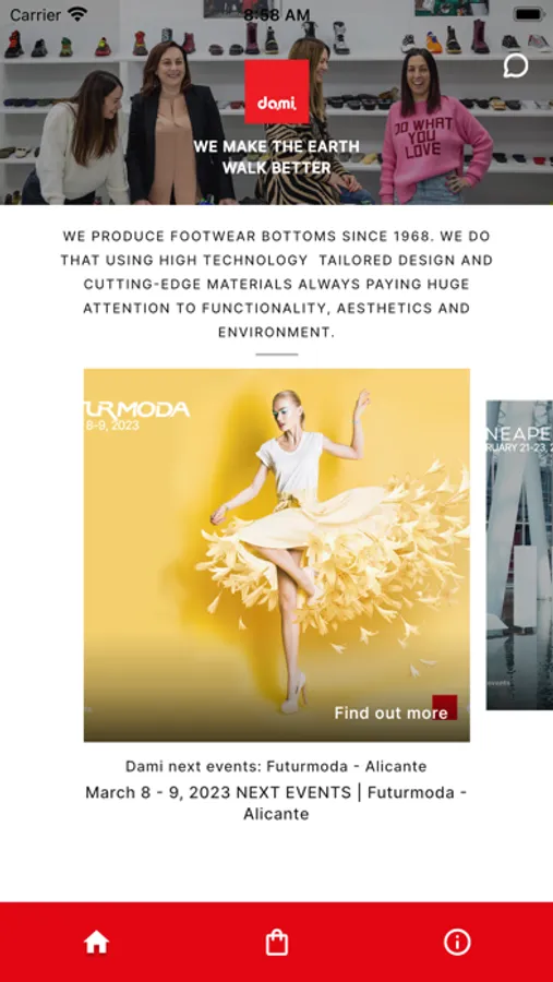 We are the new female guide of a large family business that has been through over half a century of history, believing in the value of innovation. For us, Dami is not just a business: we are creating a new business model that respects the environment, people and the community. We put quality at the center. With an innovation journey, starting from people and continuing in the process up to the product, we respond to the needs and desires of our customers. Innovation comes from the training of the people who work with Dami, because we believe that growing together, as a team, is the key to lasting success. We adopt policies that respect the environment, but above all our collaborators, customers, suppliers and the community. Sustainability is a founding value in every aspect of our business. Our goal is to offer sustainability, design and functionality of Dami soles.