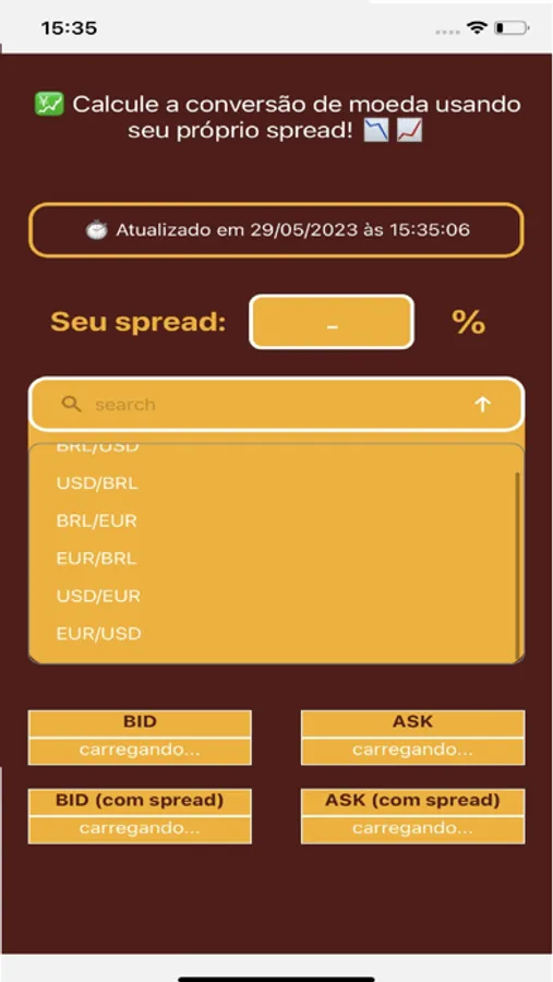 Este aplicativo tem como objetivo facilitar a realização de cálculos com moedas em tempo real