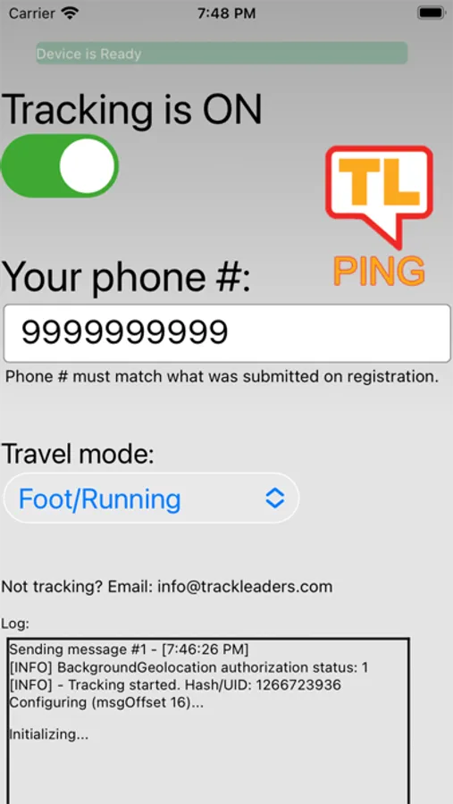 Ping is an app to send location data to Trackleaders.com for display on live event (race) maps. It is used to track bike rides, ultra-runs and other long distance competitive events.
