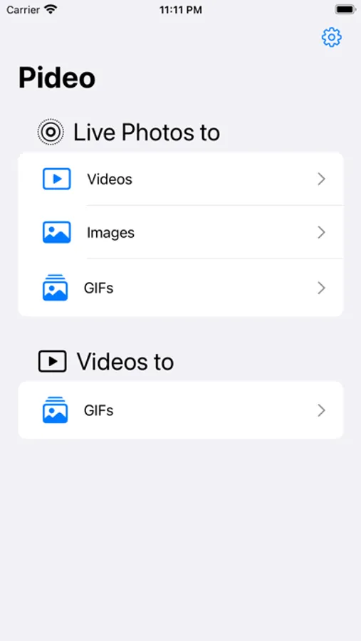 Pideo is a user-friendly tool app that can help users convert live photos to videos, gifs, and images. You can also create gifs from videos.