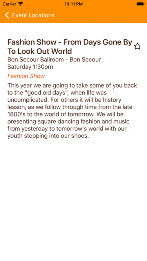 Favorite events can be marked and displayed as part of your personal schedule.