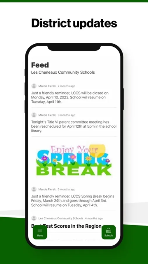 In the Live Feed is where you'll find updates from the administration about what's going on in the district right now. Whether that's celebrating a student's success, or reminding you about an upcoming deadline.
