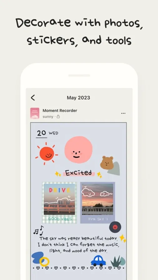 * Choose backgrounds or fonts based on your daily mood to decorate your diary. Add beautiful dividers and timestamps.