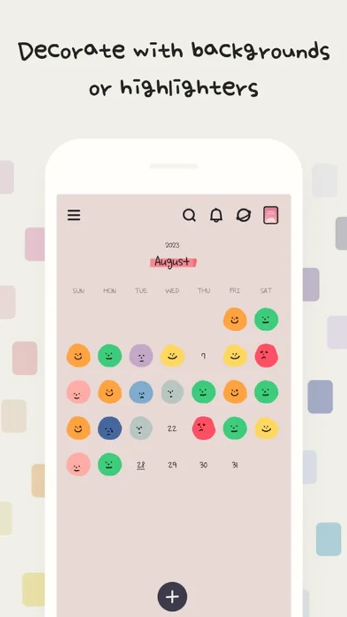 * Check your emotions for this month at a glance with the adorable MOODA calendar widget.