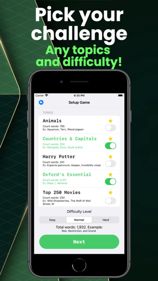 The game allows you to select topics of your interest and set your preferred difficulty level. Whether you're a beginner or a word-ace, there's something exciting for everyone.