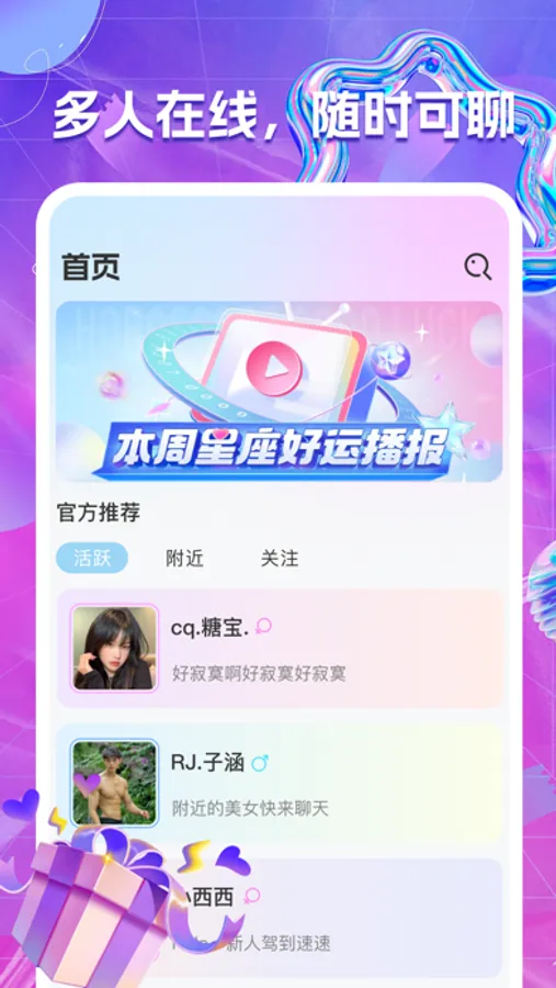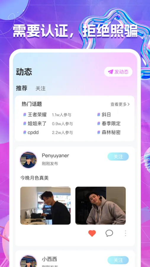 无论你是声控、颜控、还是在寻找有趣的灵魂,都可以满足你的期待,独有的遇见算法能够为你在茫茫人海中找到兴趣相同的小伙伴,他们有着和你一样的兴趣,于此自由表达自己的热爱,而不用担心旁人不解的目光,在这里,终有人回应你的期待。
