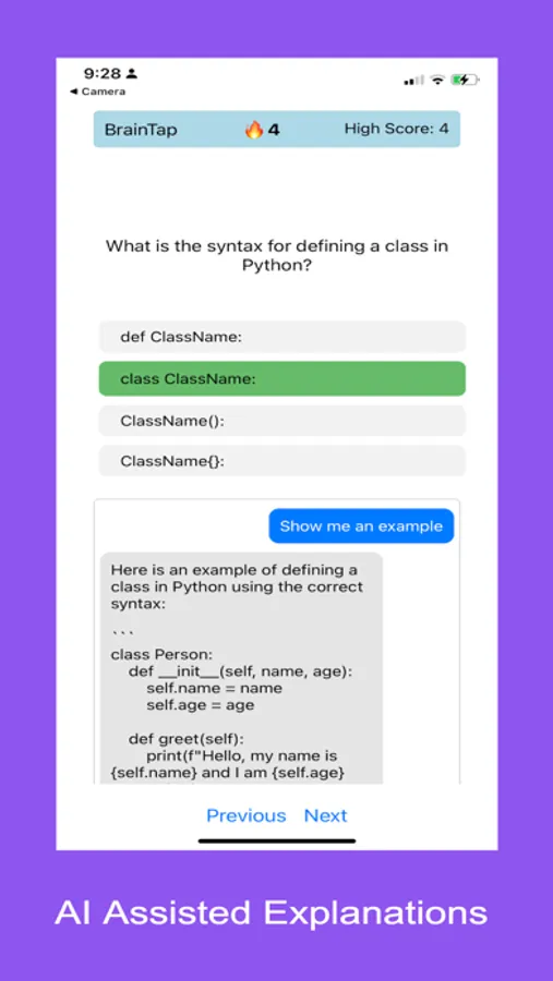 Get unstuck with our AI assistant, ready to answer all your Python queries.