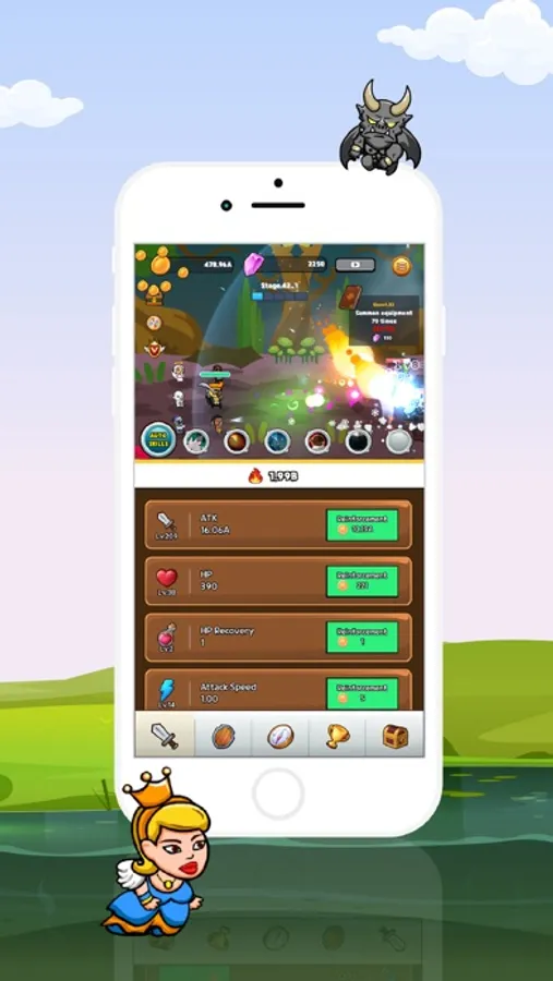 - Tap game mechanics that let you pick, power up, and send your brave slime with a single tap of the screen.