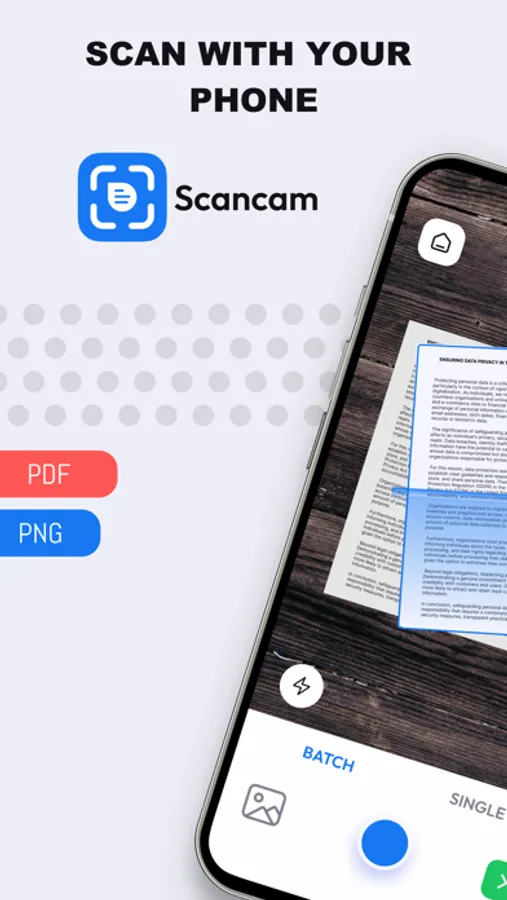 Turn your phone into an efficient scanning powerhouse with ScanCam's swift and user-friendly smart scan feature. It helps you work faster and saves you time. Download ScanCam to scan, save, and share files in PDF and PNG formats in a flash.