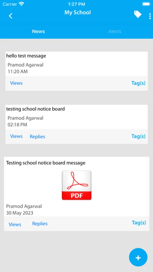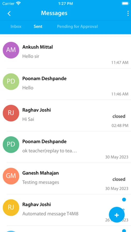 b. Instant & private messaging. Messages can be sent one to one or in a group to parents. Push notifications are instantly sent to parents informing about an incoming messages.