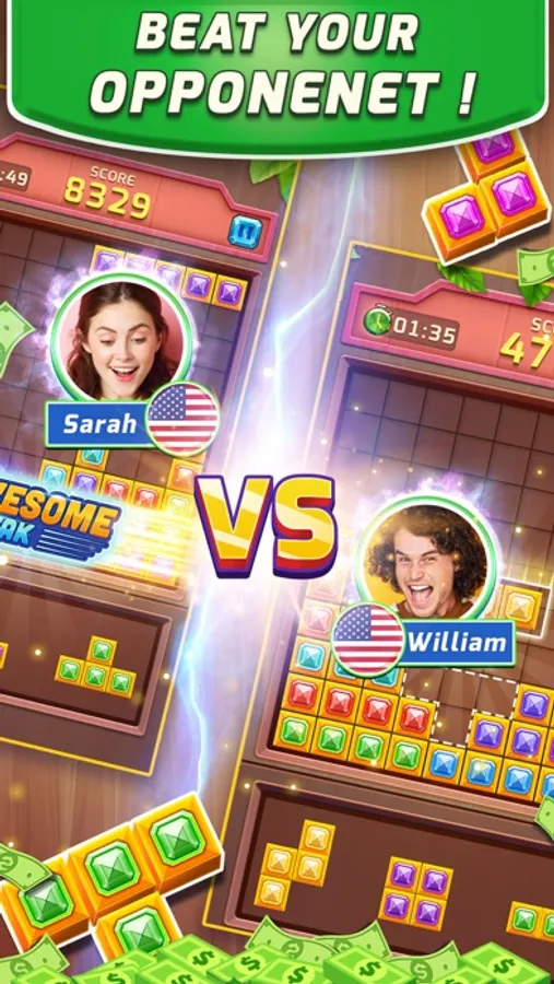 What makes Block Puzzle - Win & CashOut even more thrilling is the inclusion of competitive elements. Engage in head-to-head matches with other players, where both players receive the same shapes in the same order. The player with the highest score at the end emerges victorious. It's an exhilarating battle of wits and skill as you strive to outperform your opponents.