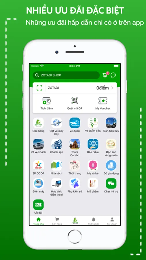 ZOTADI SHOP là chuỗi cung cấp sản phẩm dịch vụ với hơn 10.000 sản phẩm ocop đảm bảo nguồn gốc xuất xứ mang lại yên tâm cho khách hàng. ZOTADI SHOP là một trong những ứng dụng trong hệ sinh thái ZOTADI nơi khách hàng được tiêu & tích điểm thống nhất trên toàn hệ thống. Hãy tải ứng dụng và trải nghiệm mua sắm cùng ZOTADI SHOP.