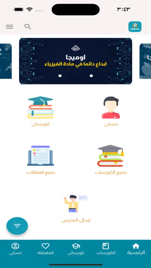 أوميجا - منصة تعليمية خاصة بدارسي الفيزياء في المرحلة الثانوية - تساعدك على التعلم بشكل سهل واحترافي يشمل امتحانات متتابعة ودورية ومتابعة مع الطالب في كل استفساراته