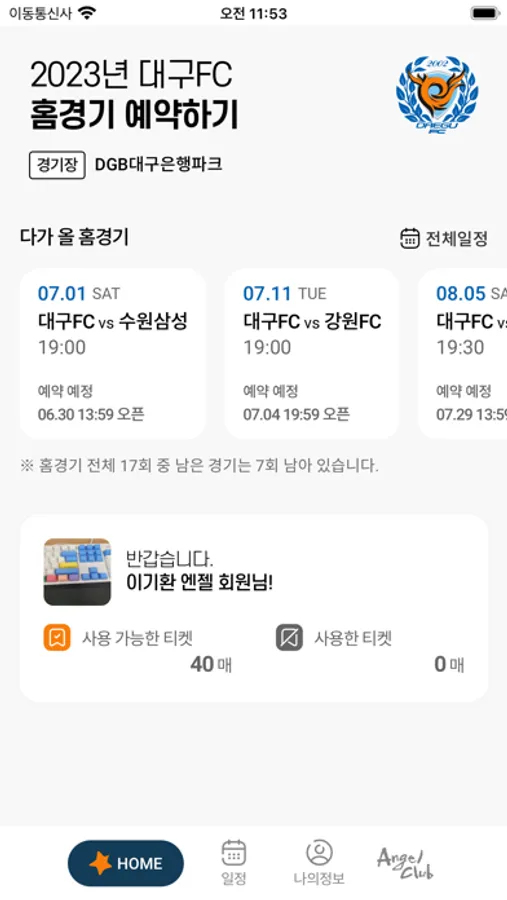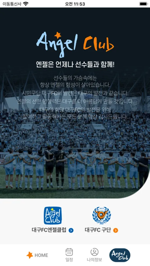 자발적 대구FC 후원단인 '대구FC엔젤클럽' 회원을 위한 앱입니다.