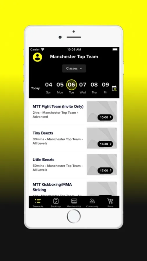 Download the Manchester Top Team app to easily book classes and manage your fitness experience - anytime, anywhere. Make a reservation, get added to a wait list, purchase class packages, check your profile and membership status, keep up to date with the latest products and services, and more – all from your device.