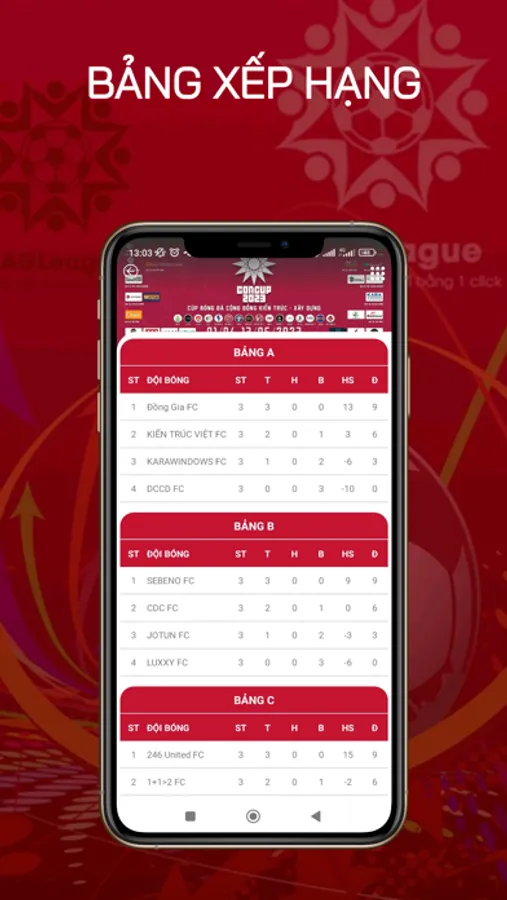 Thông tin được cập nhật liên tục trước, trong và sau trận đấu, kết quả được cập nhật trực tiếp, có thông báo khi có ghi bàn, phạt thẻ, bắt đầu và kết thúc trận đấu.
