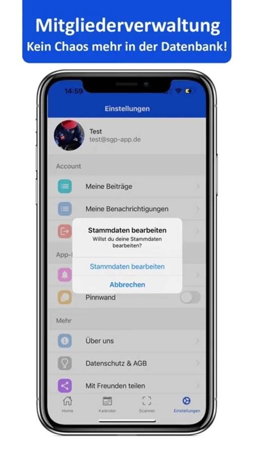 App sofort kann jeder seine Daten jetzt selbst über die App pflegen.