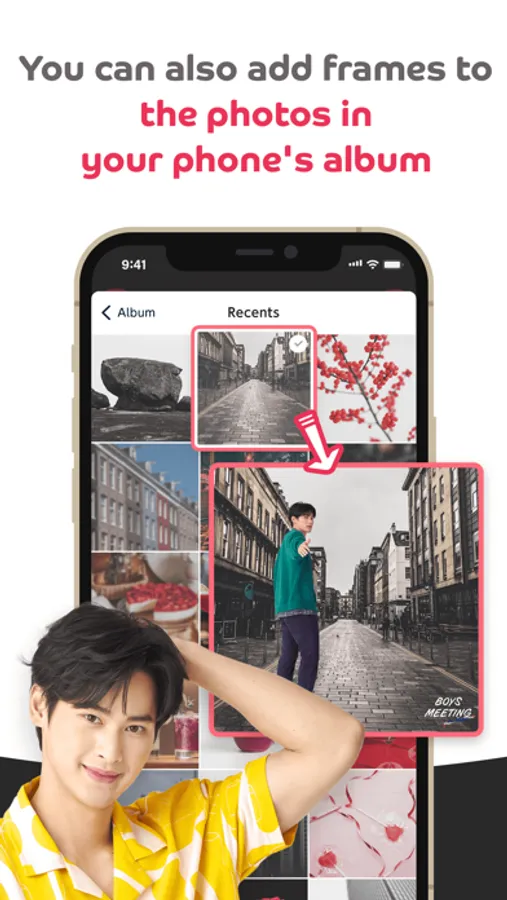 "With this app, you can enjoy taking photos in the frame of the popular Thai actor Kao (Noppakao Dechaphatthanakun) who appeared in the popular Thai BL drama ""Lovely Writer"" ""UWMA"" (""Until We Meet Again ~ Red Thread of Fate ~ "") .