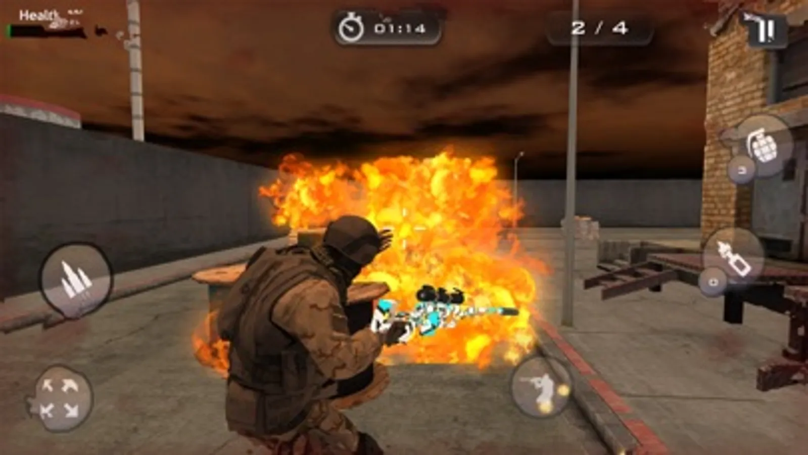 American Modern War Pro delivers a riveting shooting experience with its addictive gameplay and immersive physics. Touch and slide the screen to aim and kill your enemies, clicking the Shoot button to unleash a storm of bullets. With amazing TPS controls, you'll need to be accurate and quick on the trigger to emerge victorious.