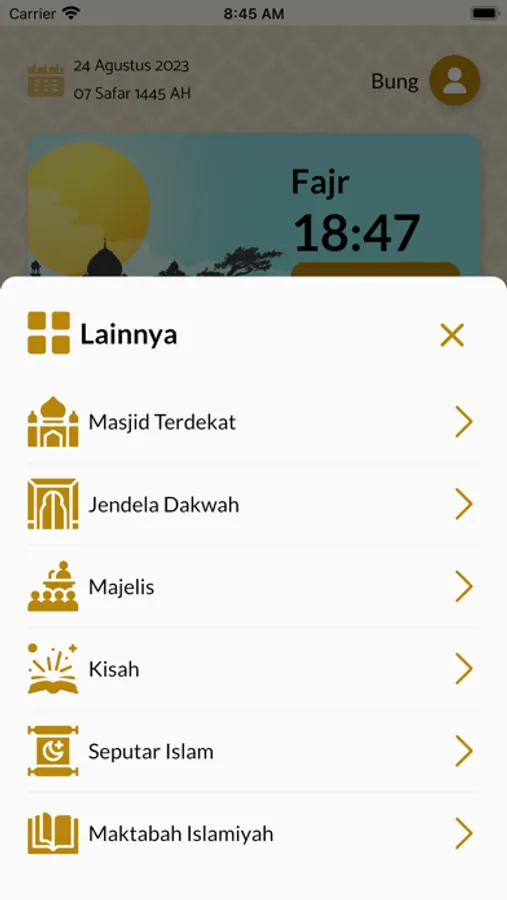anda tidak membutuhkan aplikasi lain untuk melihat jadwal sholat, kisah, majelis, masjid terdekat, seputar islam bahkan melakukan transaksi pembelian kebutuhan produk digital dan token listrik.