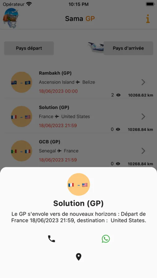 En tant qu'utilisateur de notre application GP, vous avez accès à une liste complète de transporteurs disponibles. Vous pouvez parcourir les différentes options en fonction des pays de départ et d'arrivée, visualiser les détails de chaque transporteur et obtenir leur numéro de téléphone pour les contacter directement. Cette fonctionnalité vous permet de communiquer facilement avec le transporteur choisi, de discuter des détails de l'envoi, des tarifs et de toute autre information pertinente.