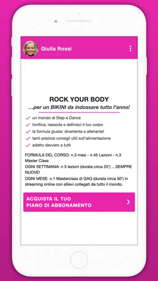 “Sono molto orgogliosa di questo mio nuovo progetto! Fidati di me e non perdere neanche un allenamento perché alla fine del corso ti prometto che sarai davvero in grado di indossare il tuo bikini tutto l’anno!”