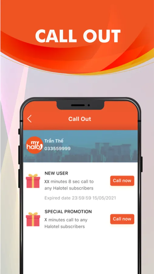 Call Out features it enebles you to call Halotel subscribers using the App even if they do not have MYHALO App installed or have smartphone or data.