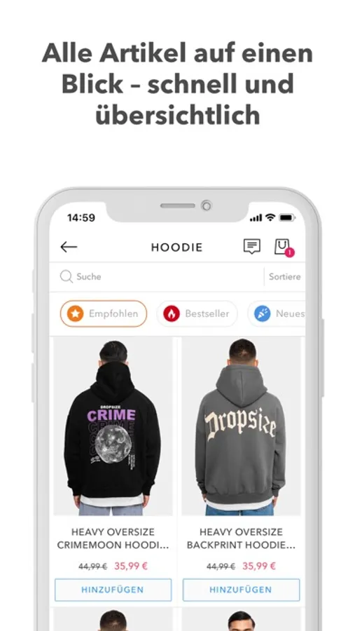 Mit der Dropsize App jetzt noch einfacher shoppen.