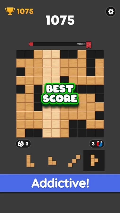 The goal of the game is place blocks in the 10x10 board and fill the lines. Drag and drop blocks onto the board to complete clearing multiple rows or columns at once. Match the lines and enjoy the shiny and satisfying animations. Blast as many wood blocks as you can at once with a relaxing experience.