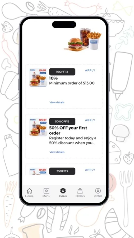 - Order and Pay using a saved credit/debit card (support for all major credit and debit cards).