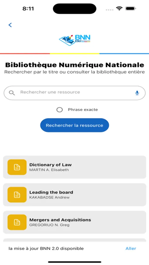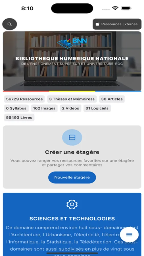 BNN ESU- une bibliothèque numérique mise en place par le ministère de l’enseignement supérieur et universitaire de la RDC pour permettre aux étudiants , personnels et chercheurs d'effectuer des recherches aisément ayant accès aux ressources pédagogiques ( Livres, Videos, Audio ,images,...)