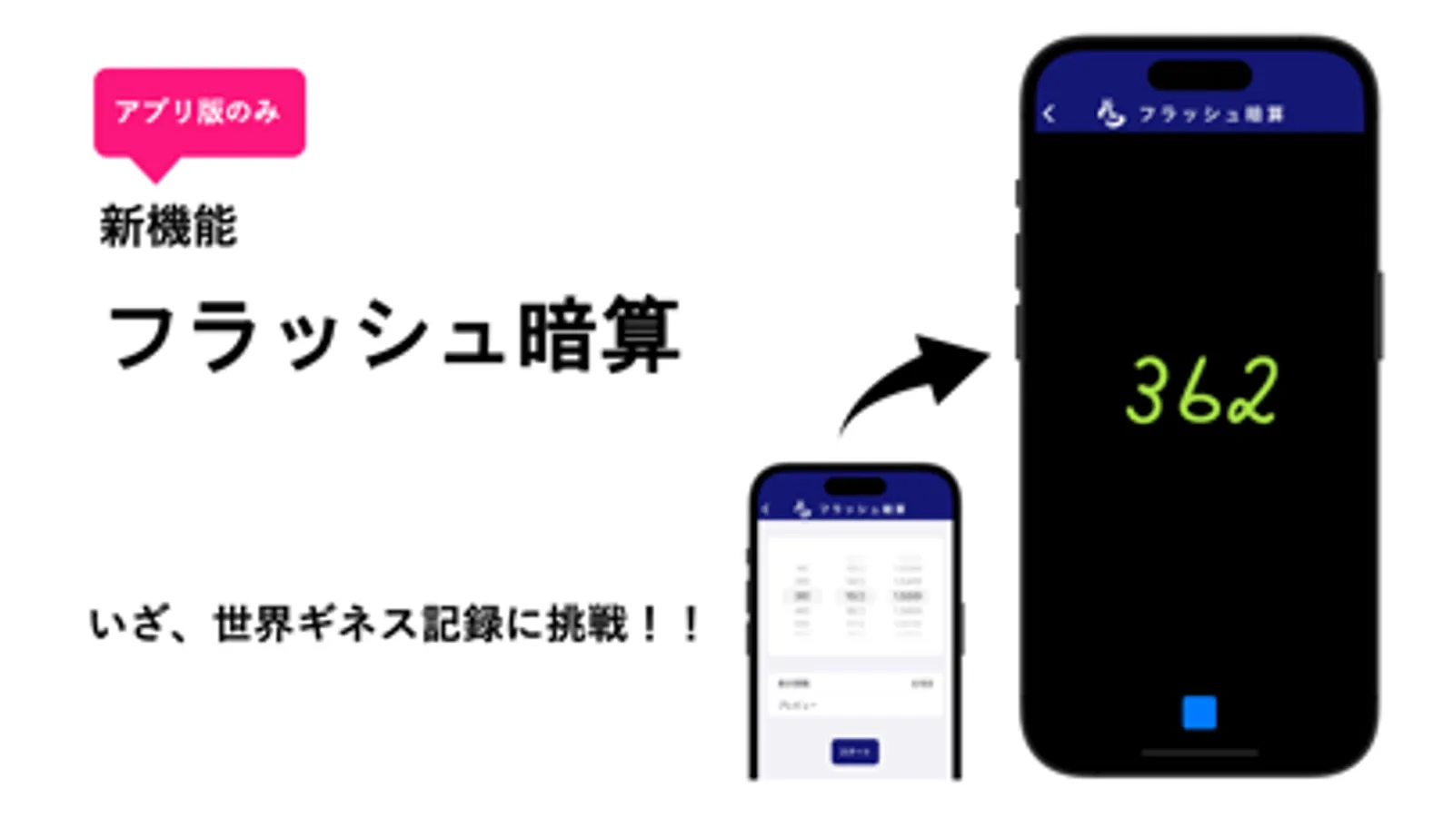 たし算、ひき算、みとり算、かけ算、わり算、フラッシュ暗算の問題が利用できます。