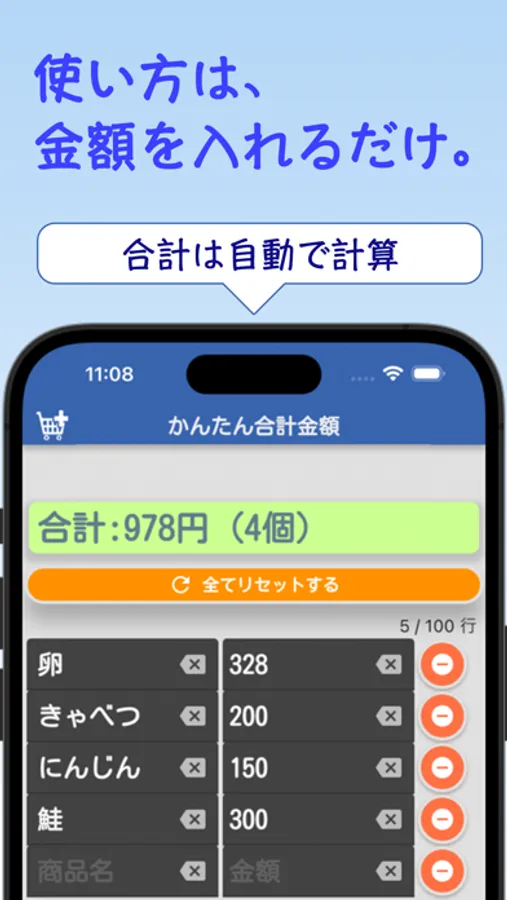 シンプルで直感的に使えるお買い物計算アプリ。