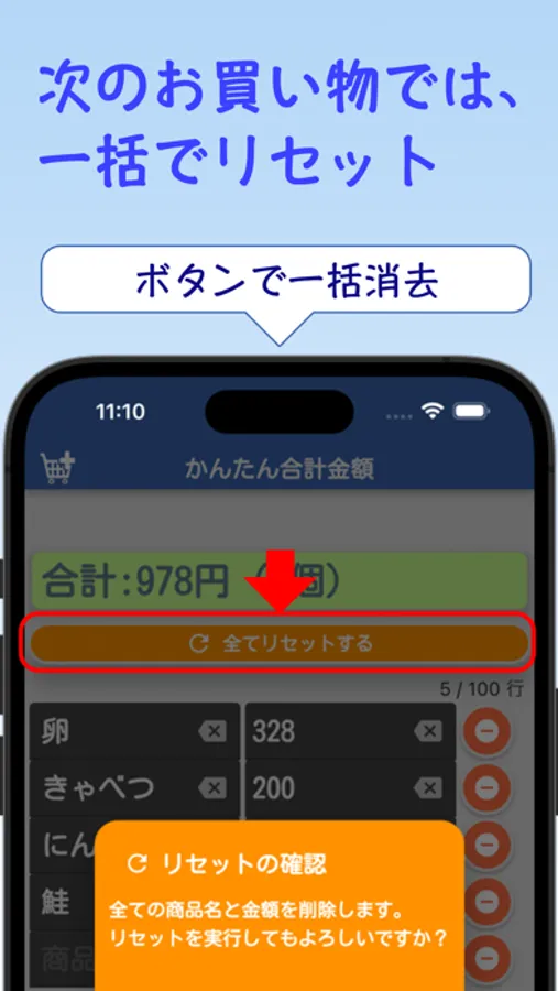リセットも一瞬で可能。これでお買い物中の計算が手間なく、快適になります。