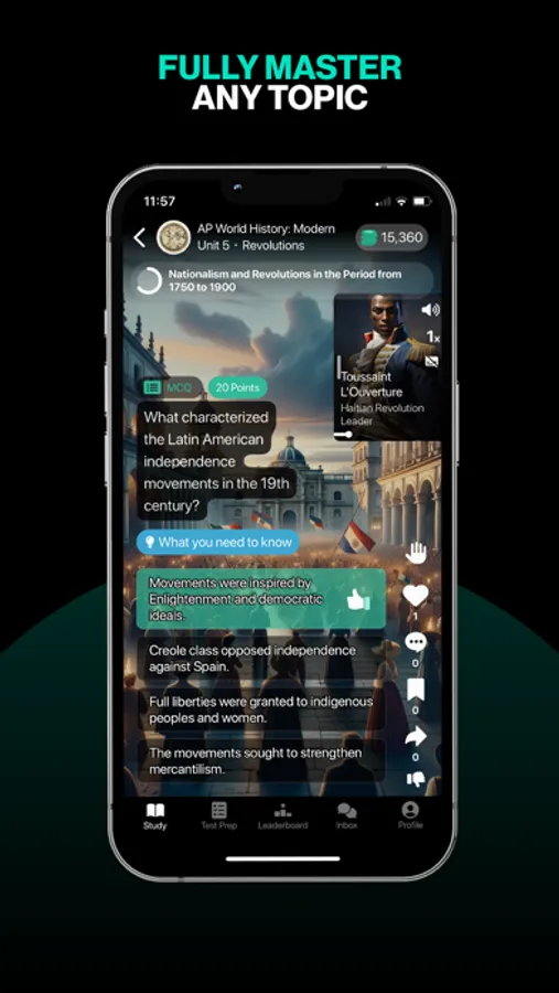 With TeachTap, you'll learn from AI-powered video lessons taught by virtual tutors, including historical figures who make complex concepts memorable and engaging. Our 24/7 AI tutors are always ready to answer your questions, provide personalized guidance, and help you overcome challenges with ease.