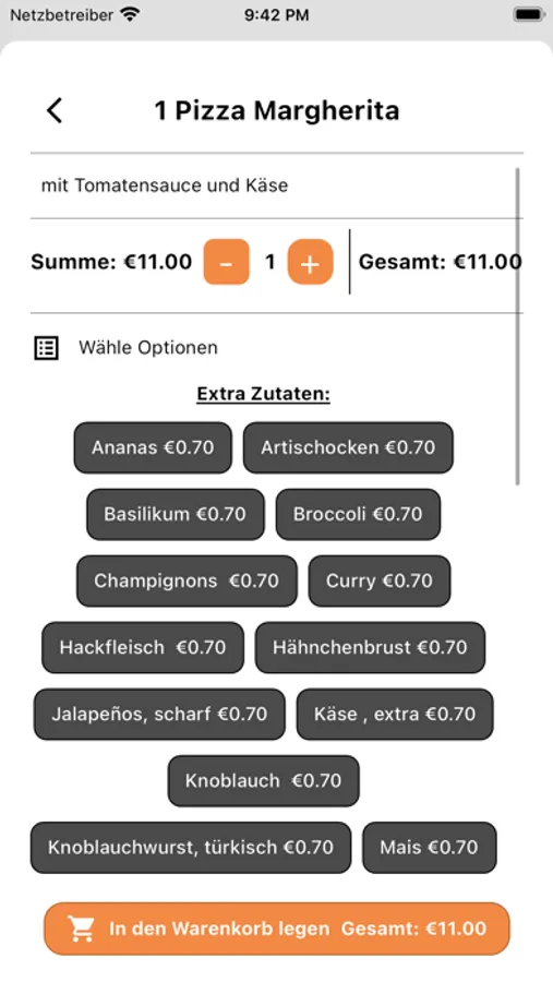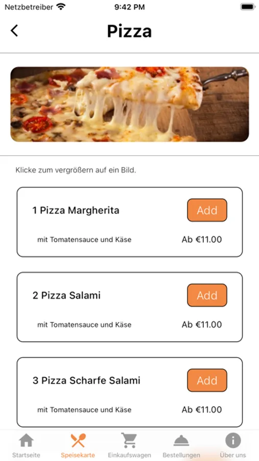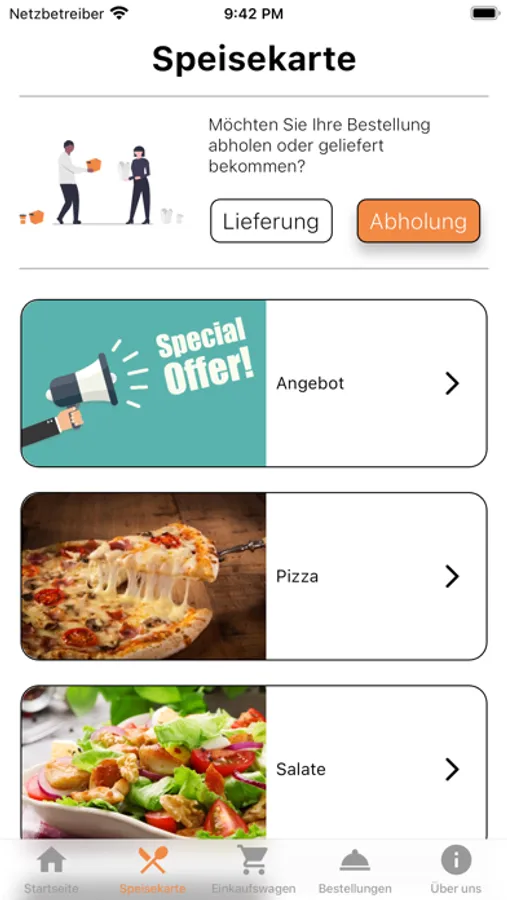 Wir liefern ofenfrische Pizza, feine Pasta, frische Salate und Getränke.